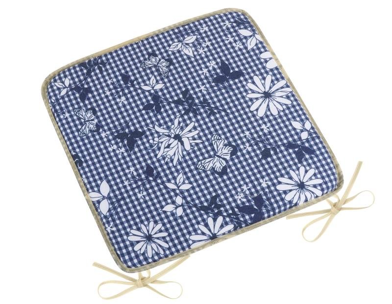 Sedák DITA hladký - modrá kostička s květem - 40x40 cm, hladký