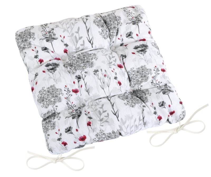 Sedák DITA prošívaný - šedé větvičky - šedá, červená, bílá - 40x40 cm, prošívaný