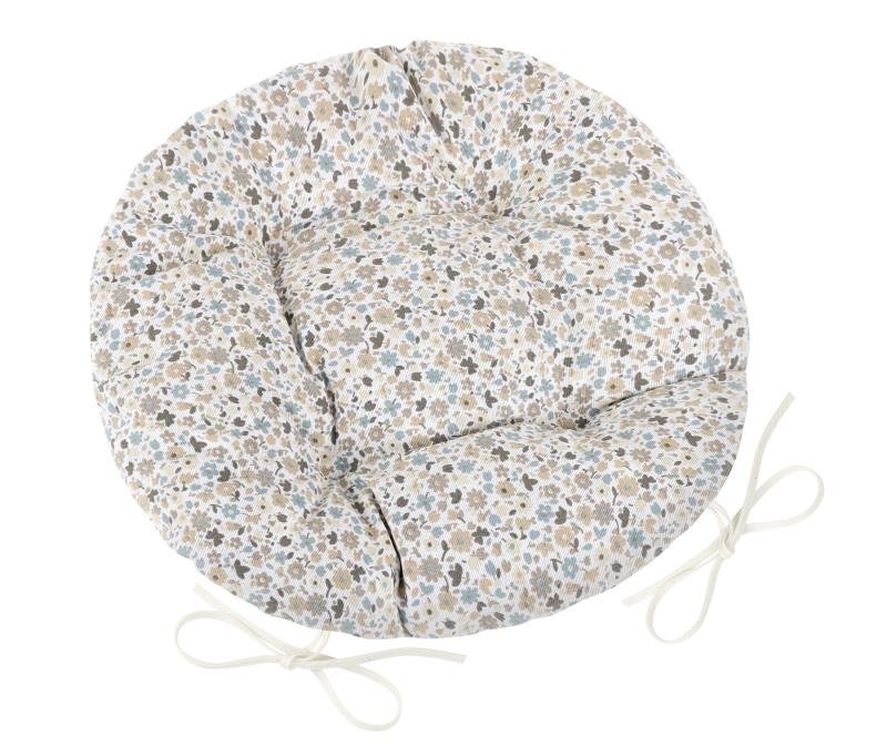 Sedák EMA kulatý prošívaný - béžovomodrý kvítek - průměr 40 cm
