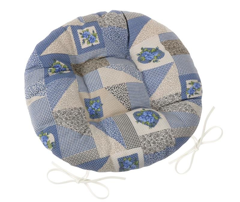 Sedák EMA kulatý prošívaný - patchwork modrý - průměr 40 cm