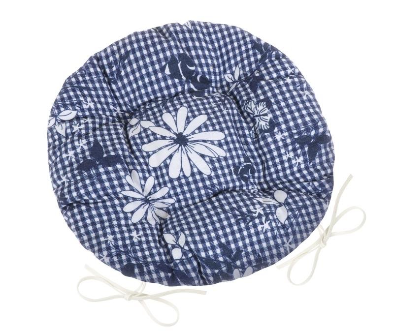 Sedák DITA kulatý prošívaný - modrá kostička s květem - průměr 40 cm