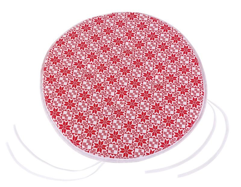 Sedák kulatý hladký se šňůrkami, uvnitř je 3 cm vysoký polyuretan, sedák je na čtyřech místech prošitý okrasným stehem proti pohybu vnitřní vyplně. Praní na 30C v automatické pračce.
