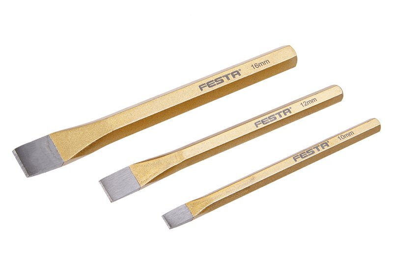 Sada sekáčů FESTA vyrobena z chrom vanadové oceli. Sada obsahuje 3 ks sekáč: 12x152, 10x142, 16x172. číst celé