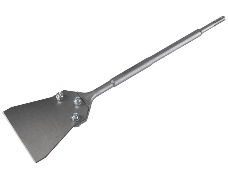 speciální sekáč se špachtlovým ostřím v šířce 130 mm a celkovou délkou 445 mm s úchytem SDS+ výkonný nástroj pro odstraňování podlahových krytin, obklad, nánosů lepidel apod. větší plocha sekáče a zbroušená hrana pro rychlejší a efektivnější práci kvalitní legovaná ocel