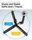 - 2 v 1 konstrukce: Funkce selfie sticku i stativu v jednom praktickém zařízení.