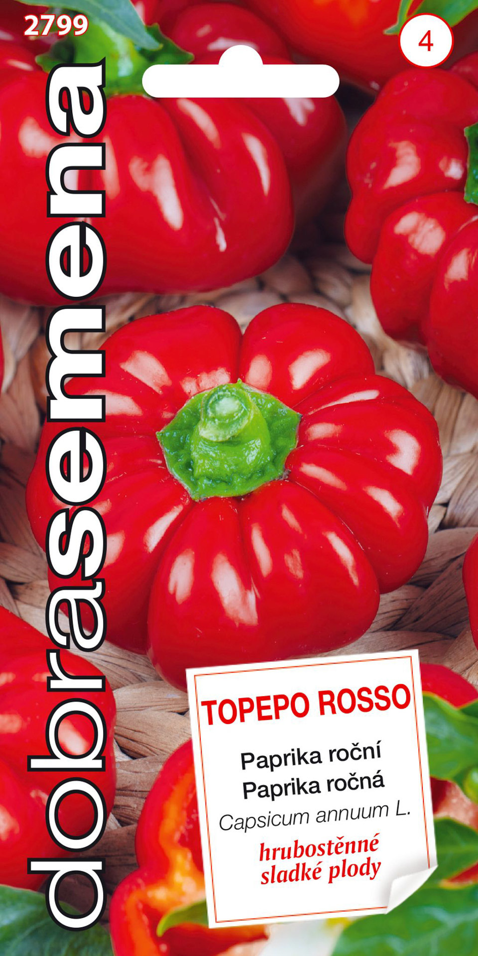 TOPEPO ROSSO ¦ tradiční italská odrůda "rajčinové papriky" s hrubou, sladkou a velice chutnou stěnou plodu. Vhodná pro přímý konzum, plnění i sterilaci. Nejlépe se jí daří na záhřevné, plně osluněné lokalitě nebo v krytých prostorách.