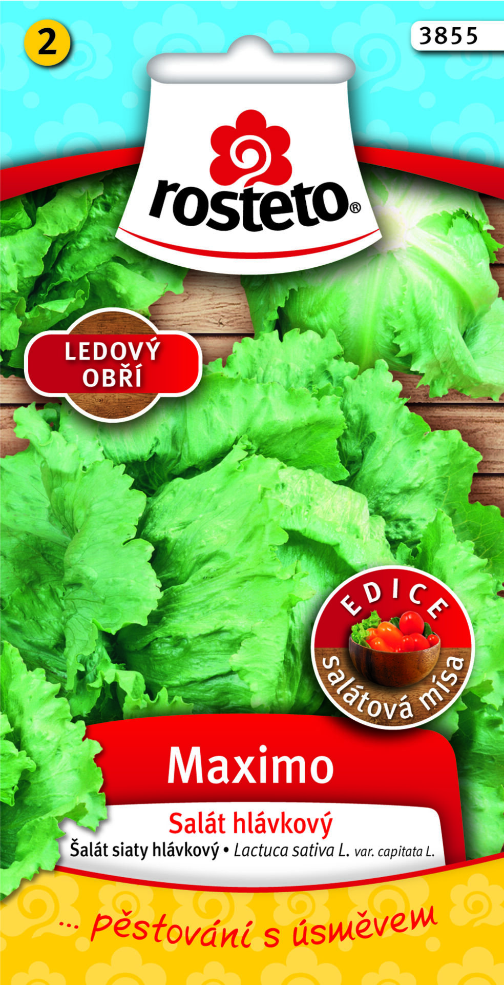 Lactuca sativa var. capitata / Šalát siatyPopis:Středně raný až pozdní ledový salát s velkými manžetovými listy a mohutnými hlávkami volnější skladby (600 - 800g), které se po uříznutí snadno rozebírají na jednotlivé listy. Je proto určen zejména pro jídelny, restaurace, výrobny míchaných salátů apod.. Listy jsou matně zelené barvy, téměř bez vroubkování. Vyžaduje spon minimálně 30 x 30 cm a dostatek vláhy, zejména v období intenzivní tvorby hlávek. Odolnost proti vybíhání hlávek je vysoká.Salát vyžaduje dobrou, dostatečně vzdušnou půdu v II. trati. Je náročný na zásobení živinami v okamžitě přijatelné formě. HTS: 1 - 1,5 g V 1 g: 800 - 1000 semenVýsev: březen - květenSklizeň: červenec - září Vybrané odrůdy zeleniny a bylinek v řadě Rosteto spojují vlastnosti, které je předurčují k přípravě salátů, zeleninových obloh, lahodných pokrmů studené kuchyně, ale i k pečení a grilování. Vynikají jemnou delikátní chutí, křehkostí a vůní, čímž přispívají k dokonalé harmonii čerstvých zeleninových pochoutek plných vitamínů.\\