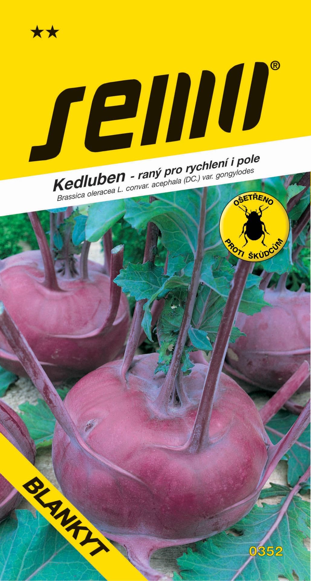 HTS: 3-4 g V 1 g: 250 - 300 semenVýsev: únor - červenVýsadba: duben Sklizeň: květen - říjenOdrůda: BLANKYTModrá, raná, slaběji olistěná odrůda. Je vhodná pro pěstování z výsadby i z přímého výsevu počátkem dubna, pro sklizeň v červnu a červenci. Je odolná proti praskání a dřevnatění. Vegetační doba od výsevu do sklizně 85 - 95 dní.