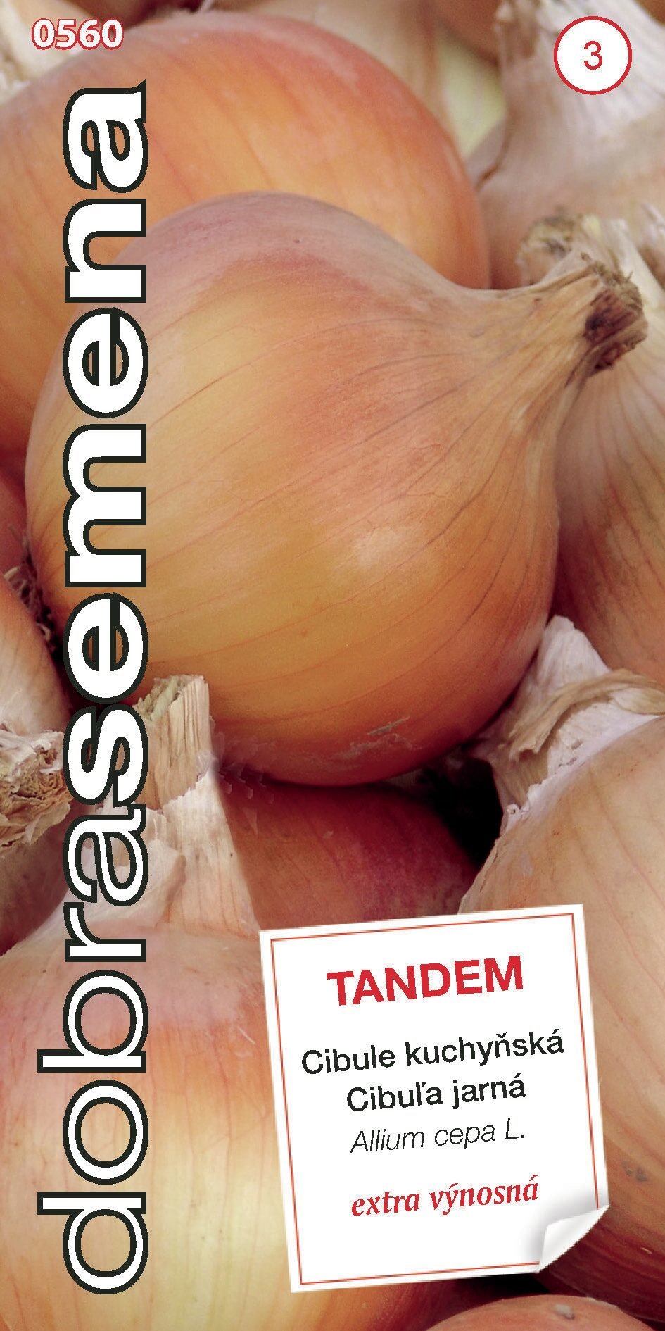 TANDEM - odrůda ceněná pro vysoký výnos a vynikající skladovatelnost. Cibule jsou kulovité, větší a dorůstají hmotnosti 130 až 135 g. Suknice jsou žlutohnědé, pevné, silně přiléhavé, odolné proti mechanickému poškození. Odrůda je výborná pro přímý konzum i na skladování. Vegetační doba od výsevu do sklizně je 123 až 128 dnů. Vysévejte přímo na záhon, 5 - 6 gramů na 10 m2.