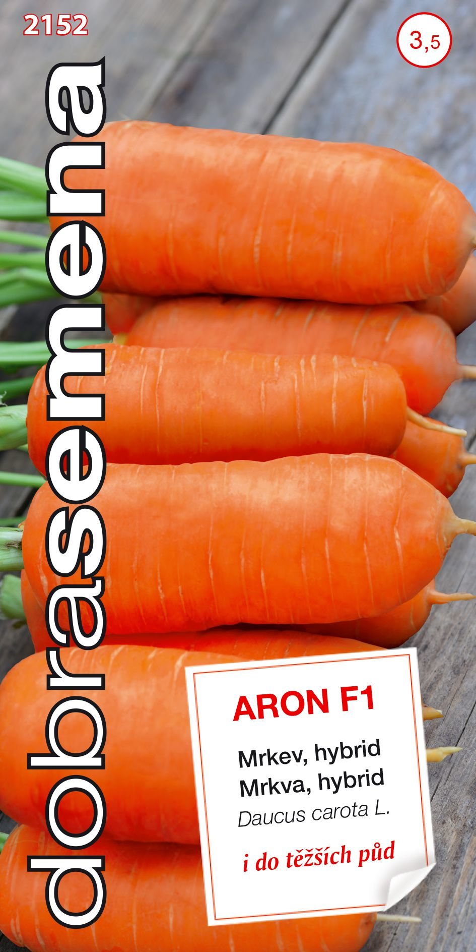 ARON F1 - velmi raná hybridní mrkev s krátkým, pouze 10 cm dlouhým kořenem. Vhodná i pro pěstování v těžších půdách. Kořen je válcovitý, pravidelný, s tupým zakončením. Dřen i kůra kořene jsou oranžové, hlava kořene nezelená ani nefialoví. Odrůda je vhodná k rychlení i k jarním až srpnovým výsevům. Vegetační doba je 75 - 80 dnů. Vhodná pro sklizeň malých „baby“ mrkviček ze zahuštěných výsevů.