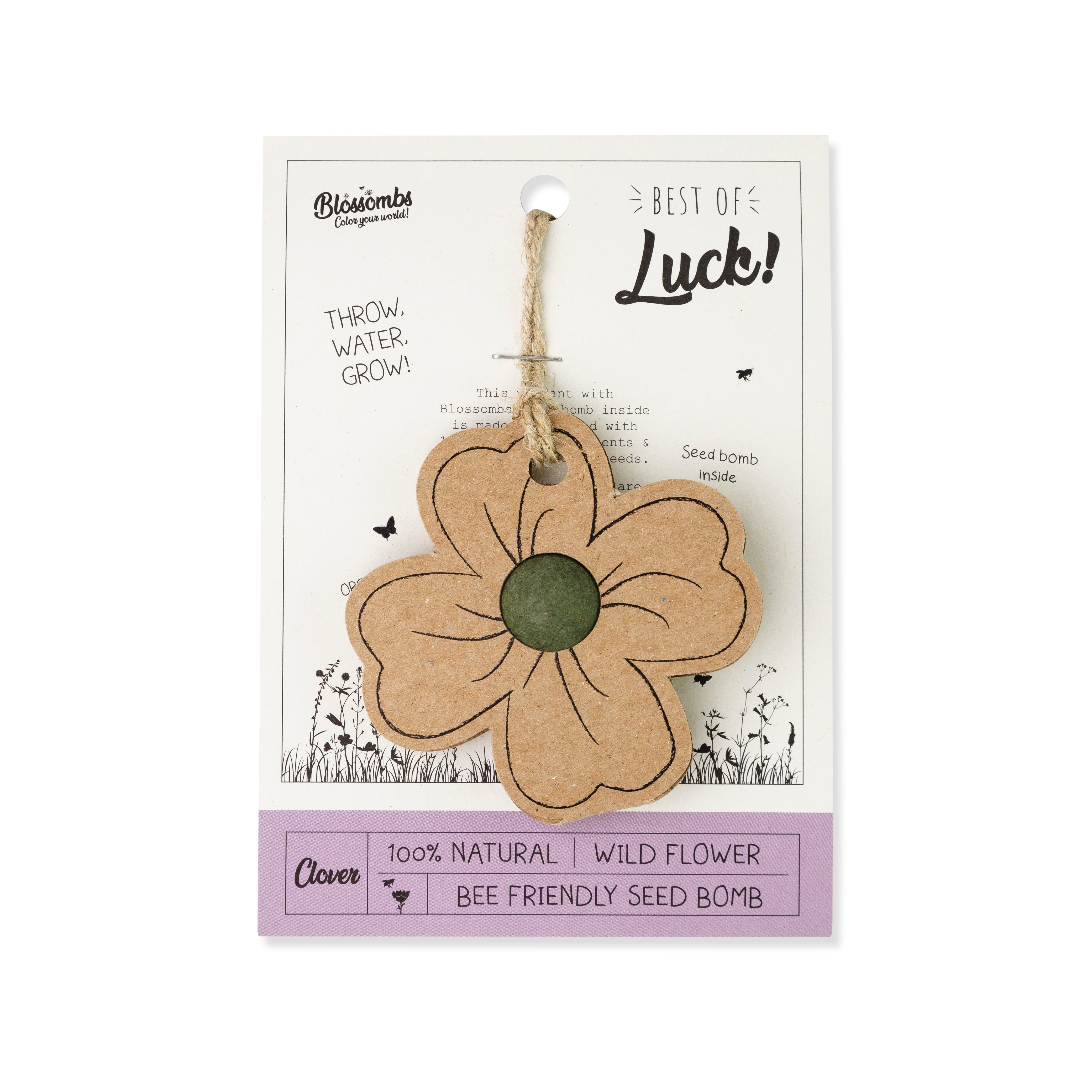 Blossombs Semínková bomba - Dárková dekorace "Hodně štěstí" - Čtyřlístek (1 ks) - originální a praktický dárek v jednom
