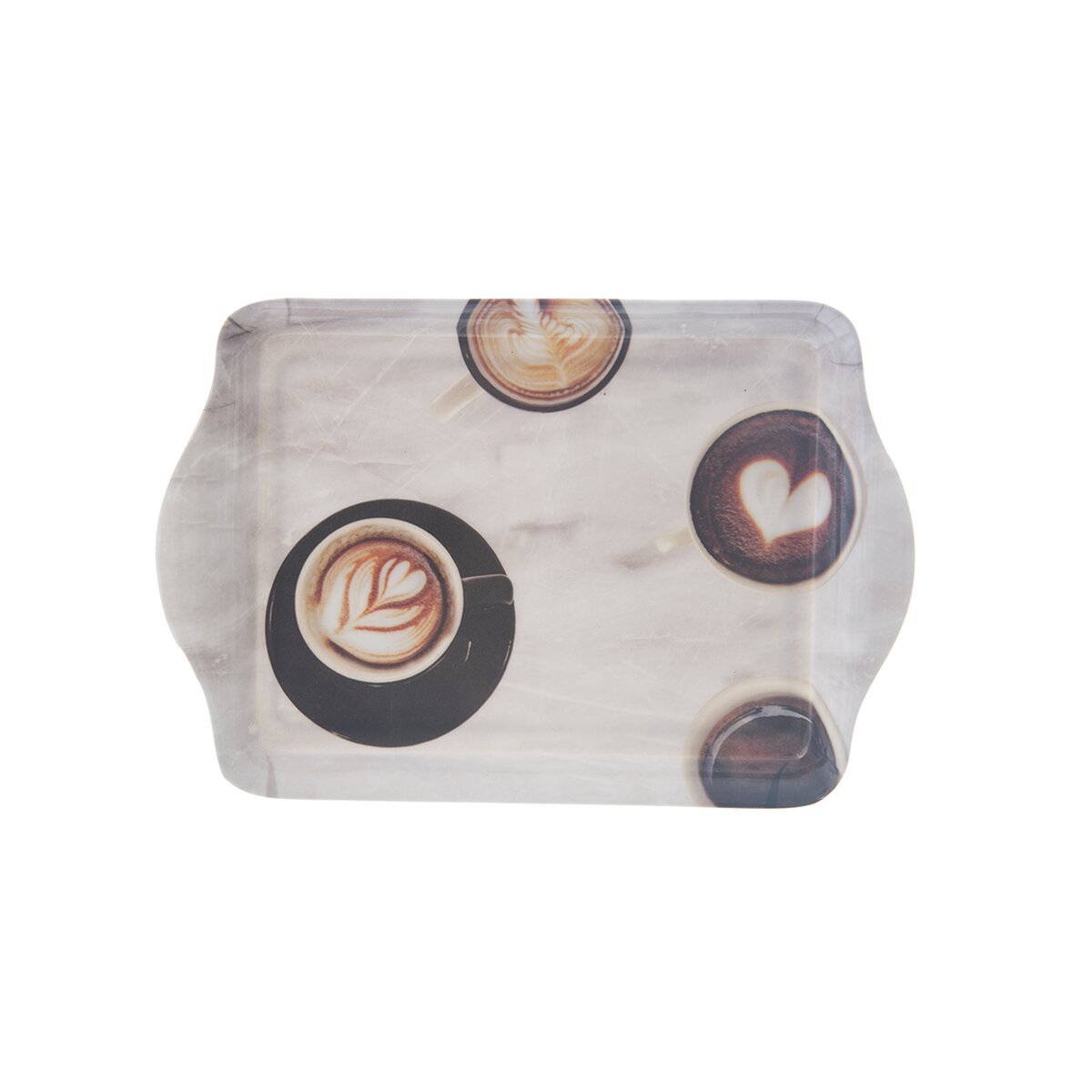 Servírovací tác s uchy. Díky atraktivnímu dekoru může být pěknou dekorací v kuchyni. Materiál: melamin. Rozměry: 21,5x14,5x2 cm. Není vhodný do myčky.