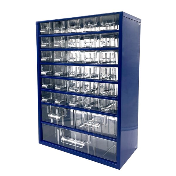 Kovové organizéry TOKOZ jsou ideálním řešením pro přehledné a bezpečné uložení drobného materiálu, součástek i nářadí. Díky robustní konstrukci a čirým zásuvkám nabízejí dlouhou životnost a snadnou orientaci.Hlavní přednosti:• pevný korpus z ocelového plechu s odolným práškovým lakem• čiré plastové zásuvky s možností doplnění přepážek• variabilní instalace: volně stojící, stohovatelné, k zavěšení na zeď• modulární systém - možnost kombinace různých velikostí zásuvek• plynulé vysouvání a stop systém proti vypadnutí• vhodné do dílen, garáží i výrobních provozů