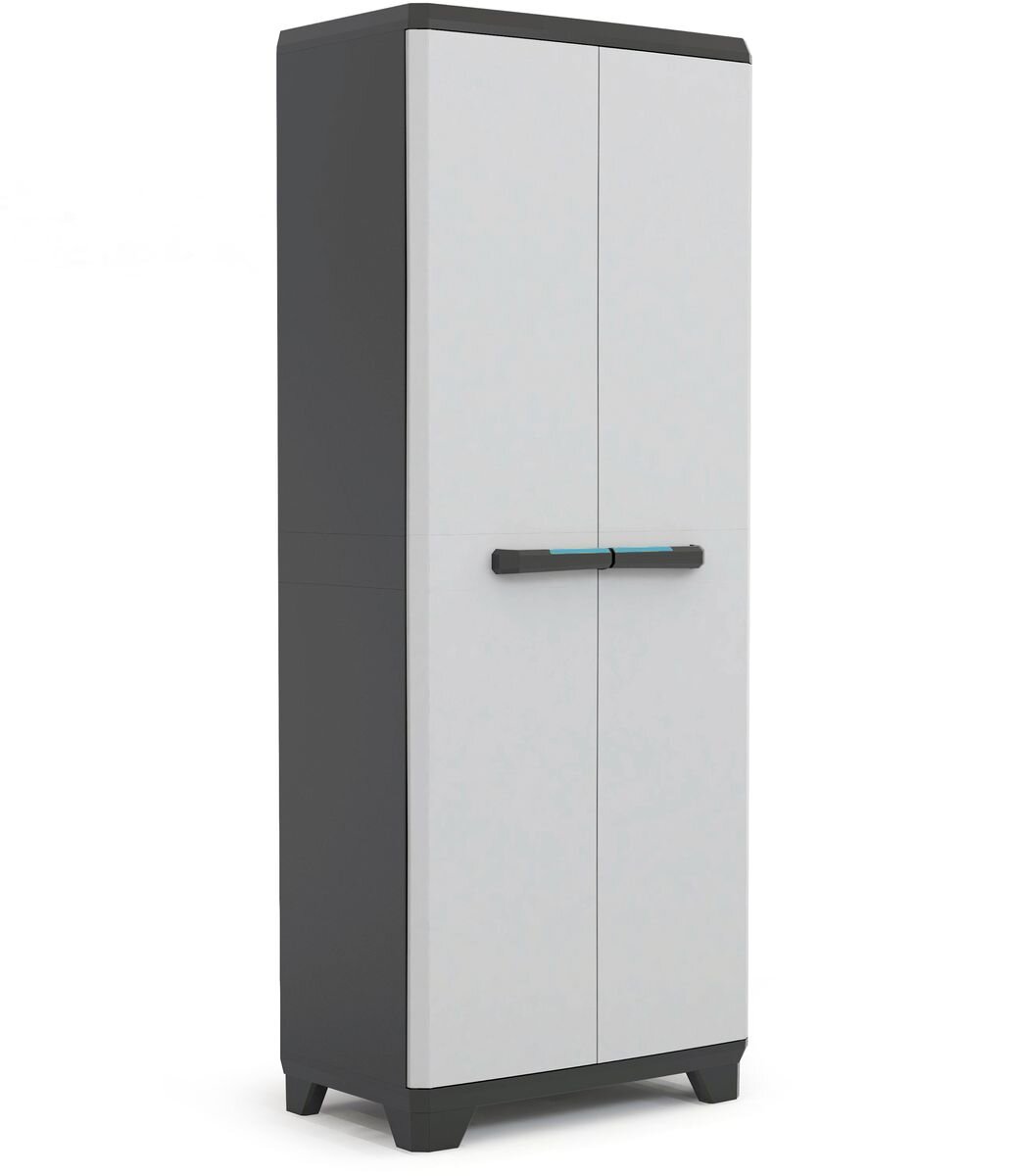 Hledáte skříň do vašií koupelny, která vám dlouho vydrží a zároveň se do ní vejde spoustu věcí? Pak je zde pro vás plastová skříň KIS Lineár Utility v černošedé barvě. Tato skříň o rozměrech 68 x 173 x 39 centimetrů má dva úložné prostory. Na pravé straně je vybavena 3 variabilními policemi, jejichž nosnost je 10 kilogramů a na levé straně se nachází prostor na uložení vysokých předmětů jako jsou například košťata, mopy a podobně. Skříň se hodí do koupelny, protože má krásné linie a je navíc vybavená ergonomickými rukojeťmi v modré barvě. Můžete ji však použít i v dílně, garáži či úklidové místnosti. Její montáž je velice jednoduchá a zvládne ji opravdu každý již během 15-ti minut.
