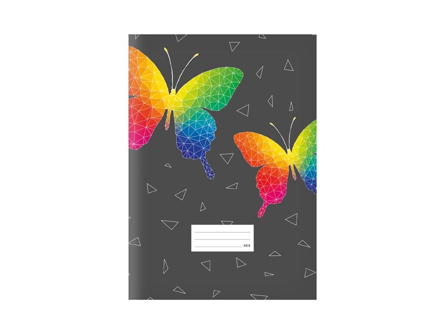 Školní linkovaný sešit ve formátu A4, v originálních černých deskách s matným laminem a lokálním UV lakem. Stránky jsou opatřeny okraji o šířce 1,5 cm.