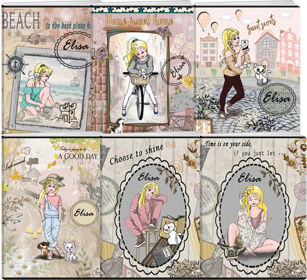 Kolekce poznámkových sešitů s kresbami dívky Elisy. Kvalitní sešity v šité vazbě s pevnou lesklou obálkou. Formát A5, 40 listů (papír 80 g), linkovaný Celkem 6 motivů. číst celé