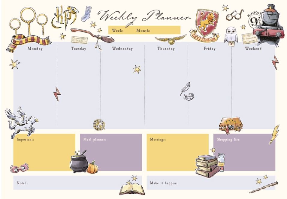Stolní týdenní plánovací blok s 54 listy inspirovaný ságou Harry Potter.