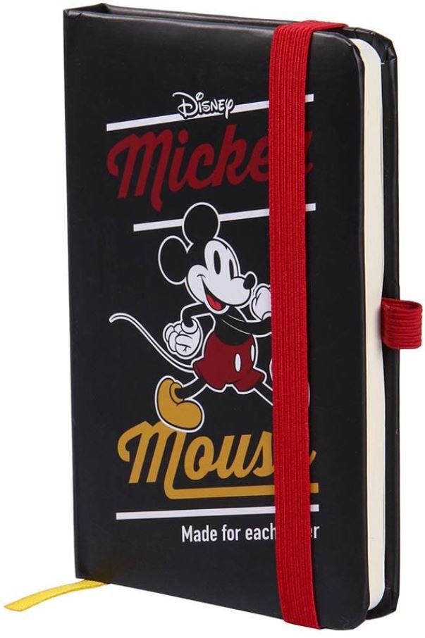 Poznámkový nelinkovaný blok formátu A6 inpirovaný pohádkovou kreslenou a animovanou postavičkou Mickey Mouse. Na přední straně je postavička Mickey s různými nápisy ve zlaté a červené barvě. Blok je chráněn gumičkou, takže si do něj můžete psát a vkládat všechny vaše poznámky a tajemnosti, aniž byste se báli jakéhokoliv vypadnutí.