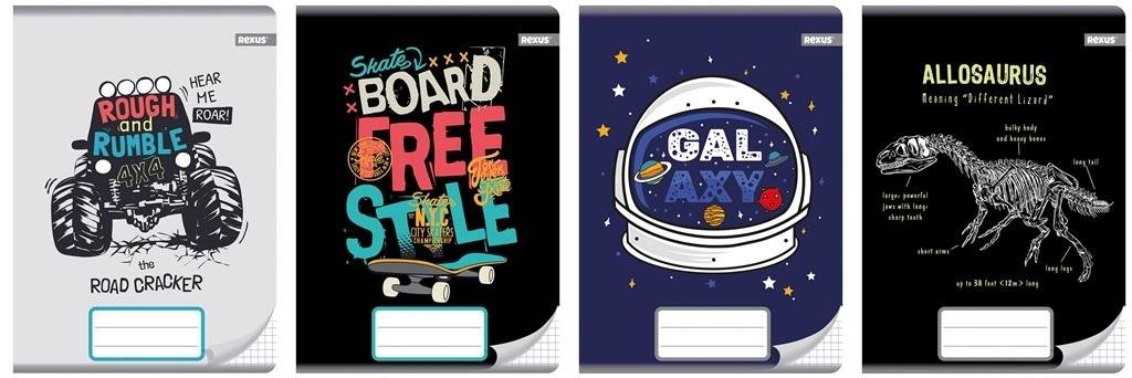 Zeszyt A5, posiada 32 kartki o gramaturze 70 g/m2 w kratkę. Charakteryzuje się estetycznym, lakierowanym wykończeniem i modną grafiką na okładce z serii Mickey Mouse. Na zewnętrznej stronie okładki: imiennik - miejsce na wpisanie imienia, nazwiska, klasy.
