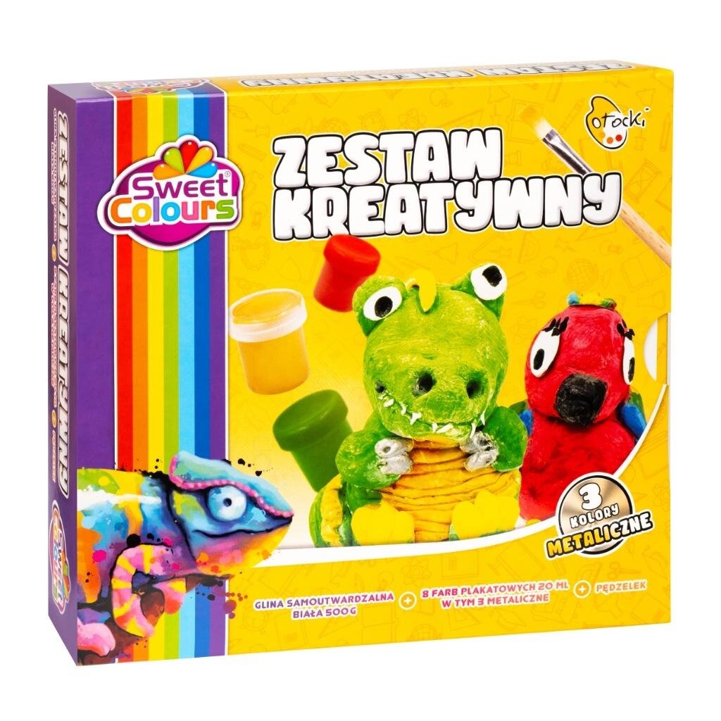 Zestaw kreatywny 8 farb + pędzelek + glina