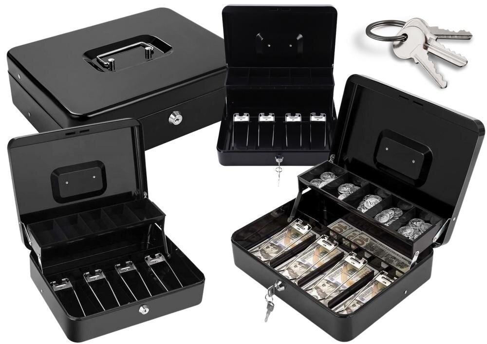 Kasetka Na Banknoty i Monety Na Kluczyk Metalowa Czarna Trwała i Praktyczna Kasetka Na Pieniądze Metalowa kasetka to solidne i bezpieczne rozwiązanie do przechowywania banknotów i monet. Zaprojektowana z myślą o maksymalnej organizacji gotówki, kasetka oferuje funkcjonalne przechowywanie w przestronnych komorach. Wykonana z walcowanej blachy stalowej, zapewnia wysoką odporność na uszkodzenia, gwarantując bezpieczeństwo przechowywanych pieniędzy oraz innych wartościowych przedmiotów. Zaletą Kasetki Jest: Bezpieczeństwo - Zamek na kluczyk w dwóch pozycjach zapewnia wysoki poziom zabezpieczenia, chroniąc przechowywane pieniądze przed dostępem osób niepowołanych. Do zestawu dołączone są dwa kluczyki, co umożliwia korzystanie z kasetki przez kilka osób lub zachowanie zapasowego klucza. Funkcjonalność i Organizacja - Kasetka wyposażona jest w 5 przegród na bilon oraz 4 metalowe dociski, które utrzymują banknoty w porządku i zapobiegają ich przesuwaniu, zapewniając wygodę i organizację przechowywania gotówki. Kompaktowe Wymiary - Z wymiarami 300 mm x 240 mm x 90 mm, kasetka jest wystarczająco przestronna, aby pomieścić dużą ilość gotówki, ale jednocześnie kompaktowa, co pozwala na jej łatwe przechowywanie nawet w mniejszych przestrzeniach, takich jak targi, małe sklepy, parkingi, gabinetach lekarskich czy innych punktach usługowych. Ergonomiczny Design - Kasetka została zaprojektowana z myślą o wygodnym użytkowaniu - metalowy uchwyt ułatwia jej transport, zapewniając wygodę i bezpieczeństwo w transporcie gotówki czy innych przedmiotów. Wielofunkcyjność - Oprócz gotówki, kasetka świetnie nadaje się do przechowywania innych drobnych wartościowych przedmiotów, takich jak biżuteria, dokumenty czy drobne elektroniki, które wymagają ochrony. Specyfikacja: Materiał: Walcowana blacha stalowa, kolor czarny Wymiary: 30 cm (szer.) x 24 cm (gł.) x 9 cm (wys.) Liczba przegród: 5 przegród na bilon i 4 metalowe dociski na banknoty Zamek: Dwupozycyjny zamek na kluczyk (w zestawie 2 kluczyki) Certyfikat: CE - produkt spełnia normy bezpieczeństwa i jakości Zastosowanie: Doskonała do przechowywania gotówki, monet, dokumentów, biżuterii, elektroniki i innych drobnych wartościowych przedmiotów. Dlaczego Warto Wybrać Tę Kasetkę? Bezpieczne przechowywanie gotówki - Zamek na kluczyk i metalowa konstrukcja gwarantują, że Twoje pieniądze i cenne przedmioty będą odpowiednio zabezpieczone przed kradzieżą. Poręczność i kompaktowość - Wygodne wymiary umożliwiają łatwe przechowywanie kasetki w różnych przestrzeniach, a metalowy uchwyt ułatwia jej transport. Funkcjonalność - Dzięki przegródkom na bilon i dociskom na banknoty, kasetka pozwala na łatwe przechowywanie gotówki, pomagając utrzymać porządek. Wielofunkcyjność - Oprócz przechowywania gotówki, kasetka świetnie nadaje się do ochrony innych cennych przedmiotów, takich jak dokumenty czy biżuteria. Kasetka na banknoty i monety to idealne i bezpieczne rozwiązanie do przechowywania gotówki w każdym punkcie usługowym. Dzięki przegródkom na bilon i dzięki dociskom do banknotów, zapewnia organizację gotówki, a metalowa konstrukcja chroni ją przed kradzieżą. Kasetka jest kompaktowa, poręczna i wielofunkcyjna, co sprawia, że jest to doskonały wybór do biur, targów, sklepów czy gabinetów lekarskich.