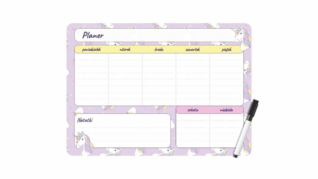 Planer magnetyczny tygodniowy unicorn 25x35cm
