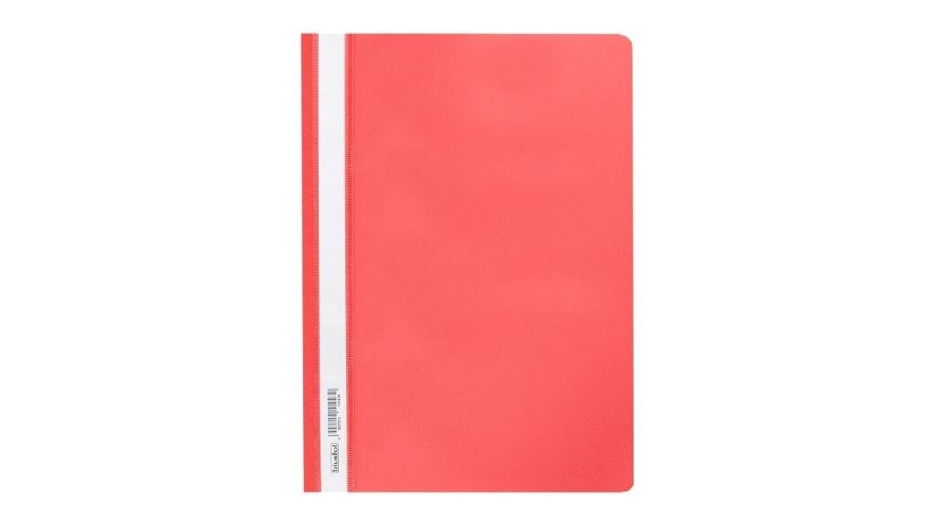 Skoroszyt wykonany z polipropylenu, miękki, przód przezroczysty, tył kolorowy. Wewnątrz klasyczny mechanizm z wąsem i listwą skutecznie zabezpieczający wpiętą zawartość; wąs o długości 14,5 cm. Na bocznej krawędzi wymienny, papierowy pasek do opisu zawartości z kodem kreskowym na szt.. Dwa wycięcia ułatwiające wysuwanie paska. Zaokrąglone rogi obu okładek.