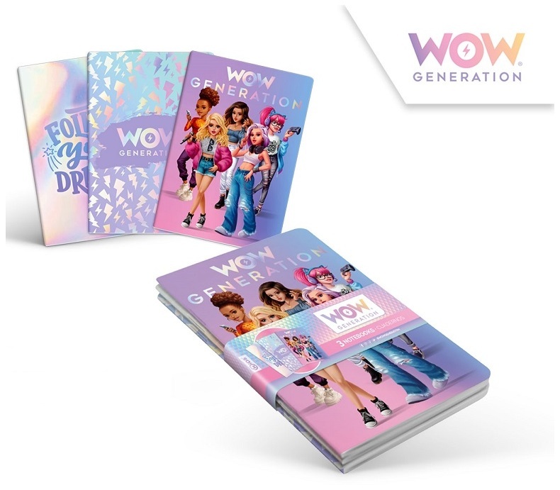 Zestaw 3 szt. zeszytów A5 24k. 100g kratka, linia, gładki, WOW, Kids