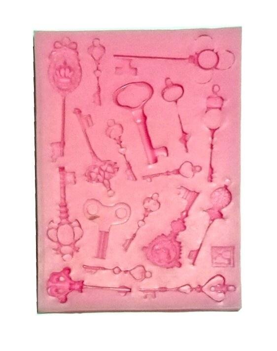 Forma silikonowa wielkości 12 cm x 8,5 cm do odlewów z gipsu, mas plastycznych, plasteliny, modeliny, mas cukierniczych itp.Z formy jest możliwość odlania lub stworzenia 16 elementów w kształcie kluczy. číst celé