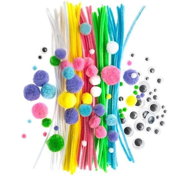 - pompony w 3 różnych rozmiarach i 6 kolorach, razem 50 sztuk