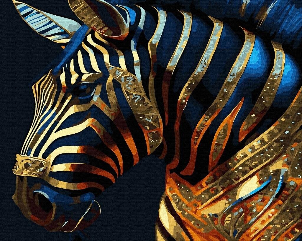 Nietypowe ujęcie zebry z dodatkiem złotych akcentów idealny wybór dla fanów zwierząt i nowoczesnych dekoracji.
