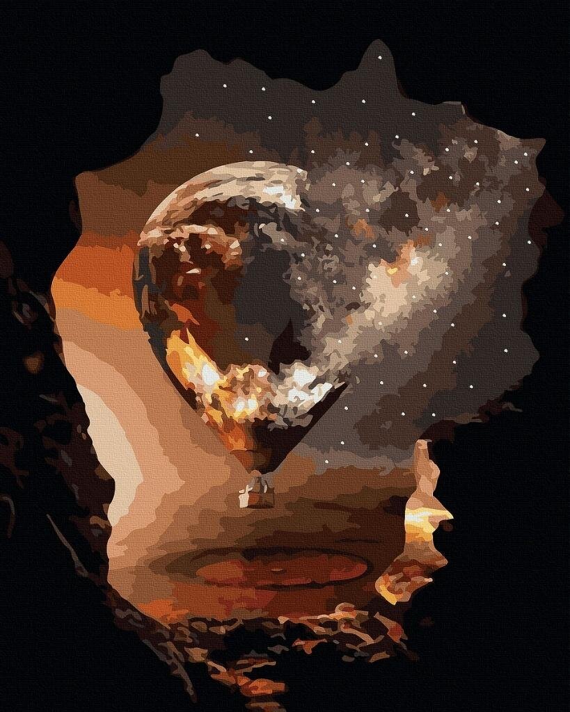 Marzycielski obraz balonu unoszącego się ku galaktyce, z księżycem jako kopułą. Idealny dla tych, którzy wierzą, że wszystko jest możliwe, jeśli sięgamy gwiazd.