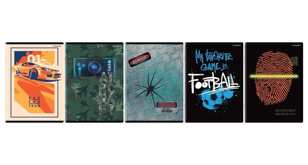 Opakowanie zbiorcze 5 szt. Kolekcje z oferty Standard to specjalnie dobrane miksy wzorów okładek dla uczniów w każdym wieku. 10 specjalnie dobranych kolekcji sprawi, że każdy znajdzie cos dla siebie. Wszystkie produkty posiadają laminowane okładki oraz adresówkę. - Kartonowe, laminowane okładki - 5 wzorów. - Oprawa na zszywki jest najbardziej popularna ze względu na łatwość użycia. Elastyczne i cienkie, zeszyty są lekkie i wygodne. - Format A5 - 80 kartek z liniaturą w kratkę z marginesem - Papier 70 g/m2. - Z przodu znajduje się adresówka do personalizacji
