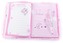 W opakowaniu znajdują się: 1 notebook (A4), odpinana kosmetyczka, 3 długopisy, 1 kłódka z kluczem.