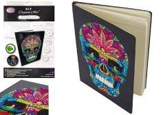 Notatnik Craft Buddy Crystal Art Czaszka to nowoczesne połączenie stylu, kreatywności i funkcjonalności. Na jego twardej, czarnej okładce umieszczony jest motyw artystycznej czaszki, który ozdabiasz samodzielnie przy pomocy błyszczących kryształków. Barwne detale i misterny wzór tworzą efektowną mozaikę o intensywnym połysku, przywodzącą na myśl meksykańskie święto Da de los Muertos.