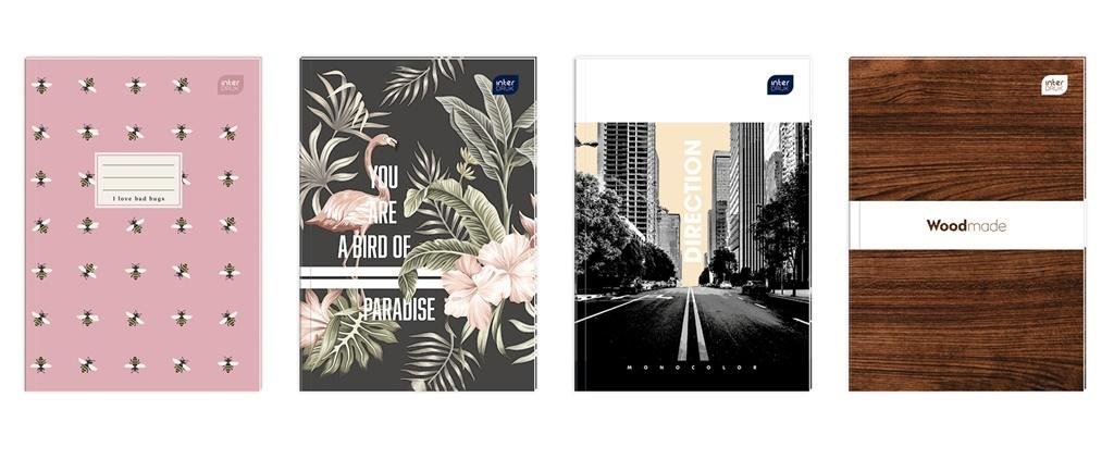 Brulion w formacie B5, 96 kartek w linię. Okładka wykonana z trwałego kartonu o gramaturze 250 300 g, pokrytego lakierem UV. Opakowanie zawiera 5 sztuk. Różne wzory, towar wysyłany losowo.
