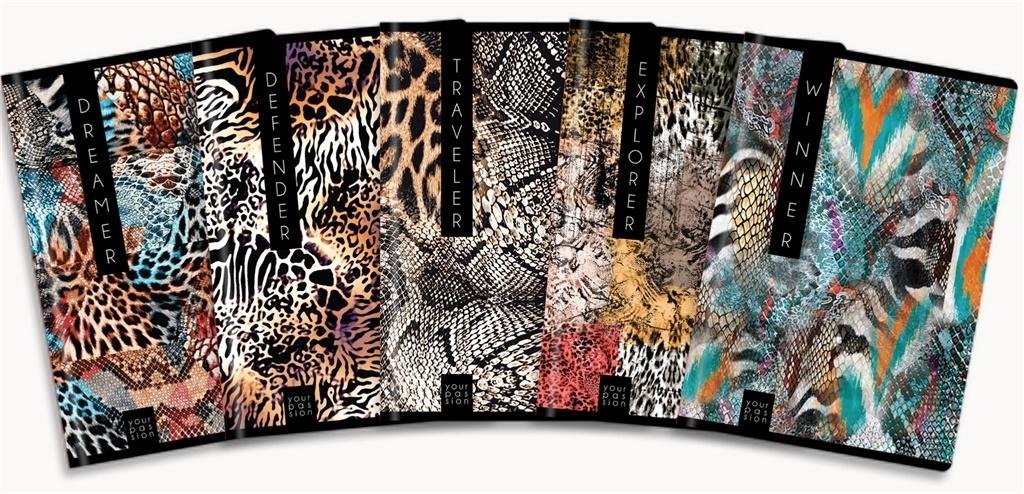 Opakowanie zbiorcze 5 sztuk. Mix okładek w opakowaniu zbiorczym.Miękkie, matowe okładki pokryte wybiórczo lakierem wypukłymZadrukowana okładka wewnętrznaNa pierwszej stronie adresówkaPapier o gramaturze 70 g/m2