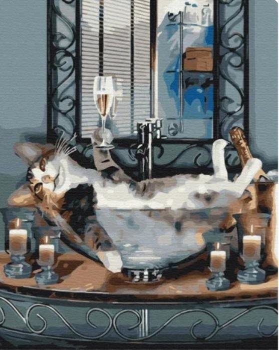 Malowanie po numerach - Musujący kot 40x50cm