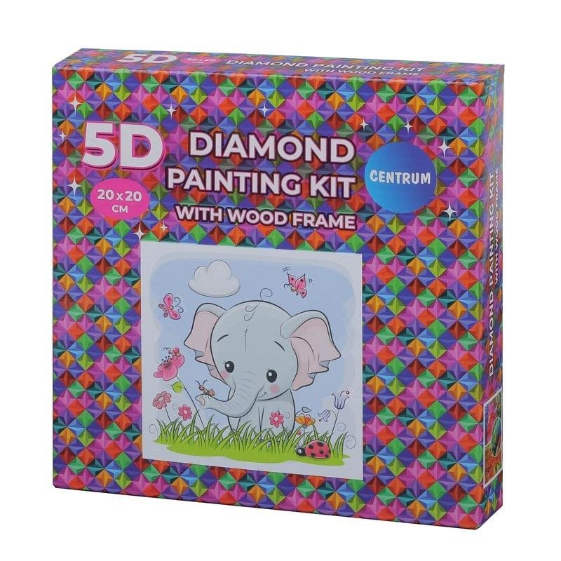 Diamentowa mozaika w ramce - Słoń 20x20 89775