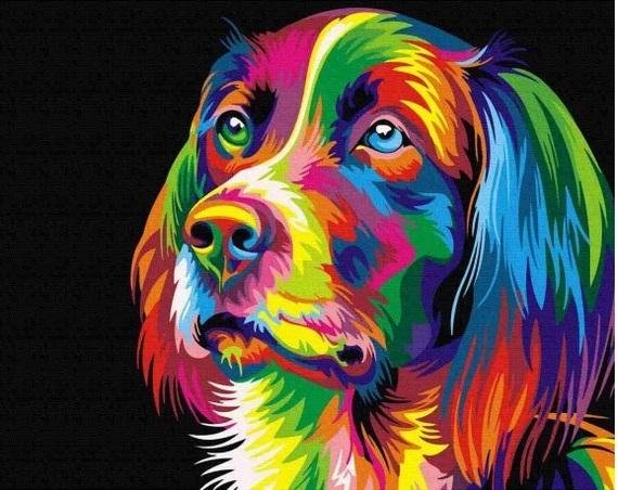 Malowanie po numerach - Tęczowy pies 40x50cm