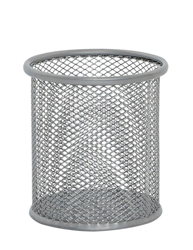 Tento praktický stojánek na psací potřeby má rozměry 90x100 mm, což je ideální velikost na tužky, propisky, pero nebo jiné kancelářské doplňky. Díky otvorům z kovové síťoviny dobře větrá a umožňuje snadný přehled nad uloženými předměty. Je vyroben z odolného materiálu, který zaručuje dlouhou životnost i při každodenním používání.