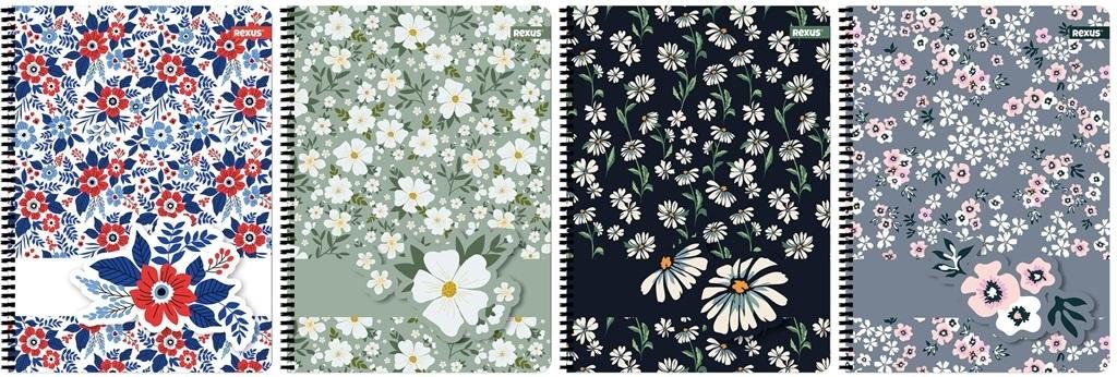 Kołozeszyt A4, posiada 80 kartek o gramaturze 70 g/m2 w kratkę. Charakteryzuje się estetycznym wykończeniem, modną grafiką Flower na okładce i czarną spiralą. Dostępne 4 wzory
