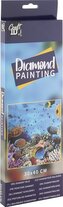 Diamont paiting (haft diamentowy / mozaika diamentowa), to są po prostu przyklejanie diamencików jednego po drugim za pomocą pisaka do pasujących numerów na szablonie motywu. Gotowy obrazek ma wymiary 40 x 30 cm i jest zadrukowany pięknym wzorem podwodnego świata.