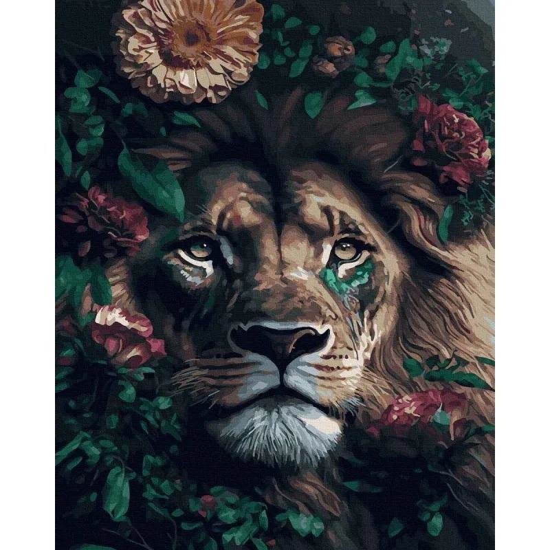 Malowanie po numerach - Lew wśród kwiatów 40x50cm