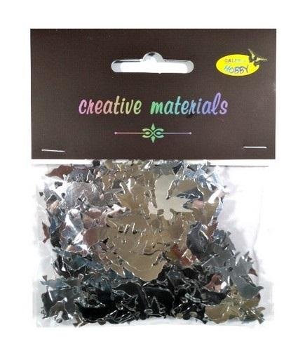 Elementy wykonane z metalizowanej twardej folii PET w kształcie anioła w kolorze srebrnym. Opakowanie zawiera 15 g. elementów číst celé