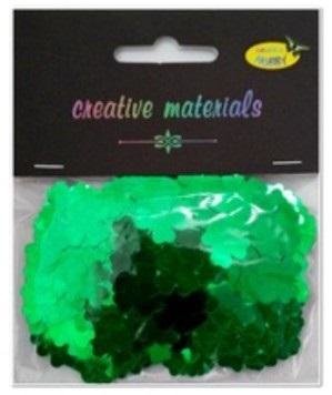 Elementy wykonane z folii PET w kształcie koniczyn czterolistnych , w kolorze zielonym metallic . Pakowane w opakowania z eurozawieszką zawierające 20 gram elementów. číst celé