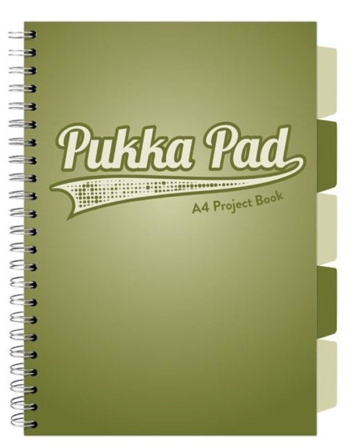Kołozeszyt Pukka Pad w kartkę z serii OLIVE GREEN PROJECT BOOK w formacie A4 to doskonały wybór dla osób, które cenią sobie estetyczny wygląd oraz zwracają uwagę na jakość wykonania i funkcjonalność zeszytów w życiu codzienny. Produkt został wzbogacony o kolorowe przekładki, które współgrają bezpośrednio z okładką.