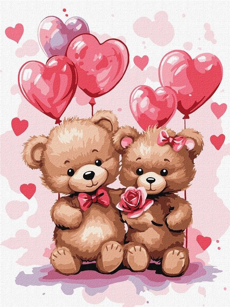 Malowanie po numerach - Zakochane misie 30x40cm