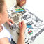 - Możesz użyć kredek bądź miękkiego ołówka do pisania i gumki do łatwego czyszczenia.