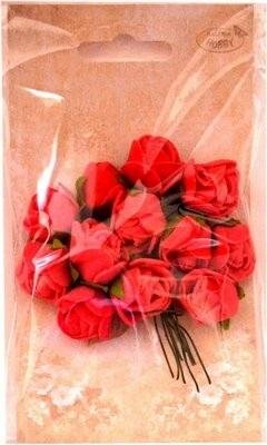 Różyczki z bardzo cienkiej pianki EVA - mikrogumy , tzw. foamiranu, z drucikiem w kolorze zielonym, skręcone w jedną wiązkę. Można je rozłączyć i używać pojedynczo do zdobień lub użyć jako całą wiązkę.